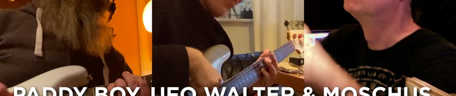 Ich stöberte auf Facebook herum und sah ein Drumvideo vom Moschus, den ich seit Ewigkeiten nicht gesehen habe. Ich hatte damals mit diversen Bands in seinem Studio aufgenommen. Ich fragte einfach „Hey, ich habe gerade nix zu tun. Sollen wir mal versuchen ein Lockdown Video zu machen? Jeder von zuhause aus? Vielleicht ne Hendrix Nummer?“ Und zack hatte ich am nächsten Tag Moschus‘ Spur und Video im E-Mail Postfach. Da dachte ich mir ok, „challenge accepted“ 🙂