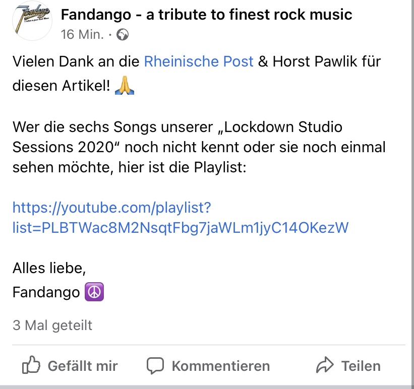 Der Moschus hat unsere Spuren dann in seinem Studio gemixt und gemastert. Da wir uns alle beim Einspielen mit dem Handy oder Webcam gefilmt haben, habe ich dann alle Dateien meinem Kumpel und Kollegen Michael Strohm zukommen lassen, der uns ein schönes Video daraus gebastelt hat.