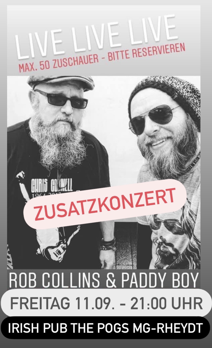 Da die Plätze beim letzten Mal in nur wenigen Stunden ausreserviert waren und viele traurig waren, dass sie keinen Platz mehr bekommen haben, geben wir am 11.09. ein Zusatzkonzert im The Pogs – Irish Pub in MG-Rheydt.