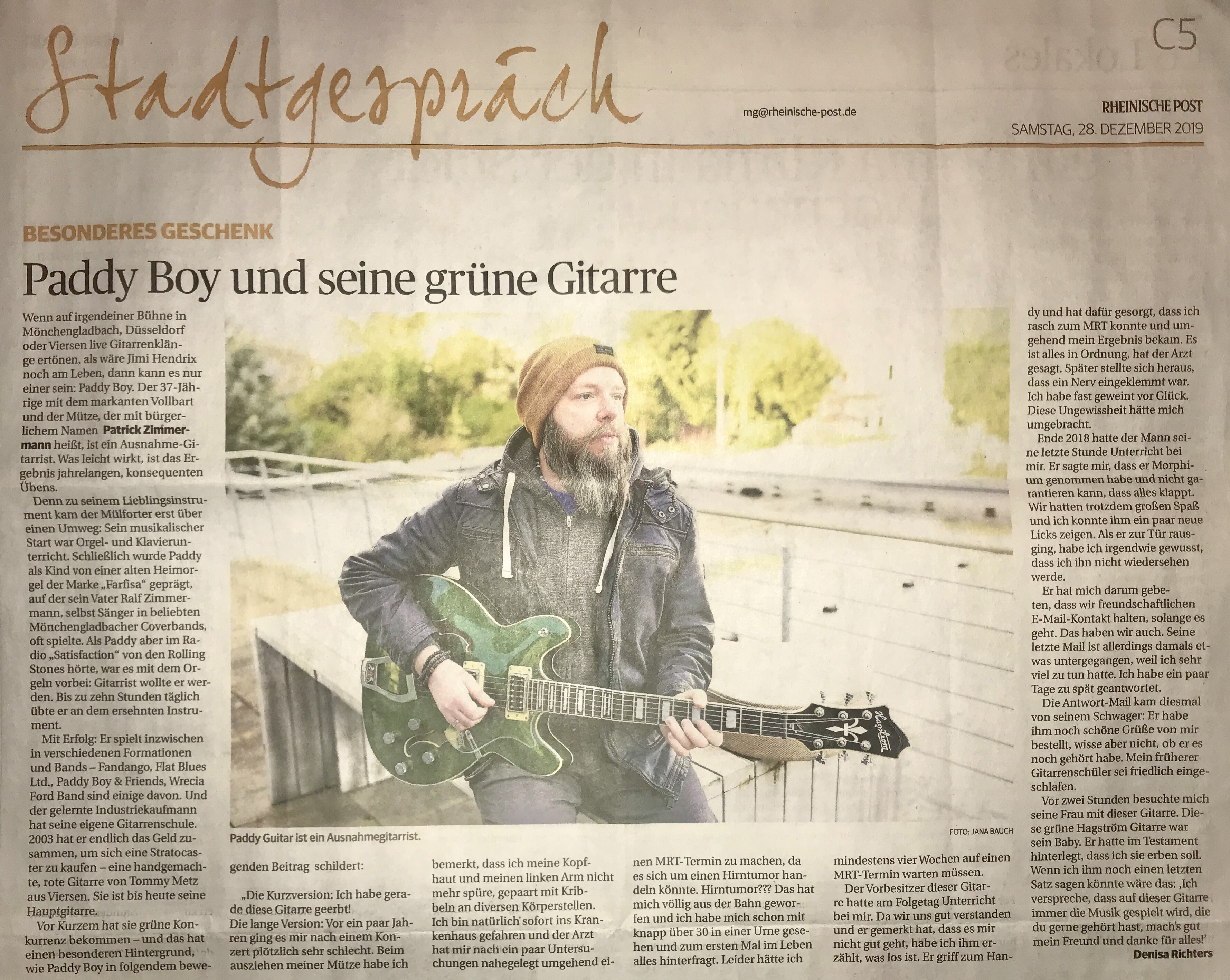 Vielen Dank an die Rheinische Post Mönchengladbach, die auf die Idee kam meine kleine Geschichte der grünen Gitarre abzudrucken, welche leider auf sehr traurige Art und Weise den Weg zu mir fand. 🙏