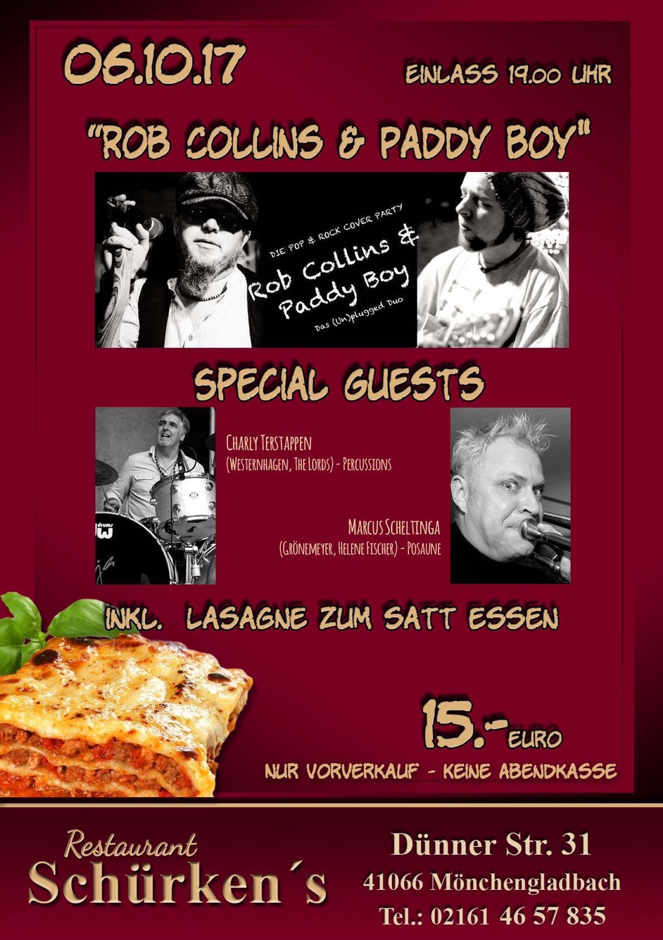 Pssst, das Rob & Paddy Special in Mönchengladbach mit Special Guests und Lasagne zum sattessen für nur 15 Euro.