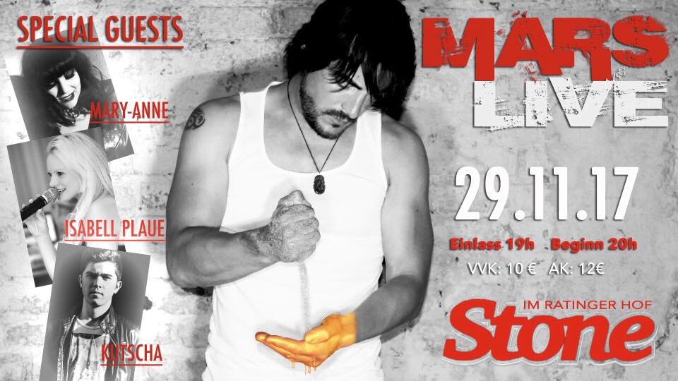 Am kommenden Mittwoch, den 29.11. spiele ich mit Schauspieler, Sänger und „The Voice“ Teilnehmer Mars Saibert (& Band) ein Konzert im Stone im Ratinger Hof in Düsseldorf.