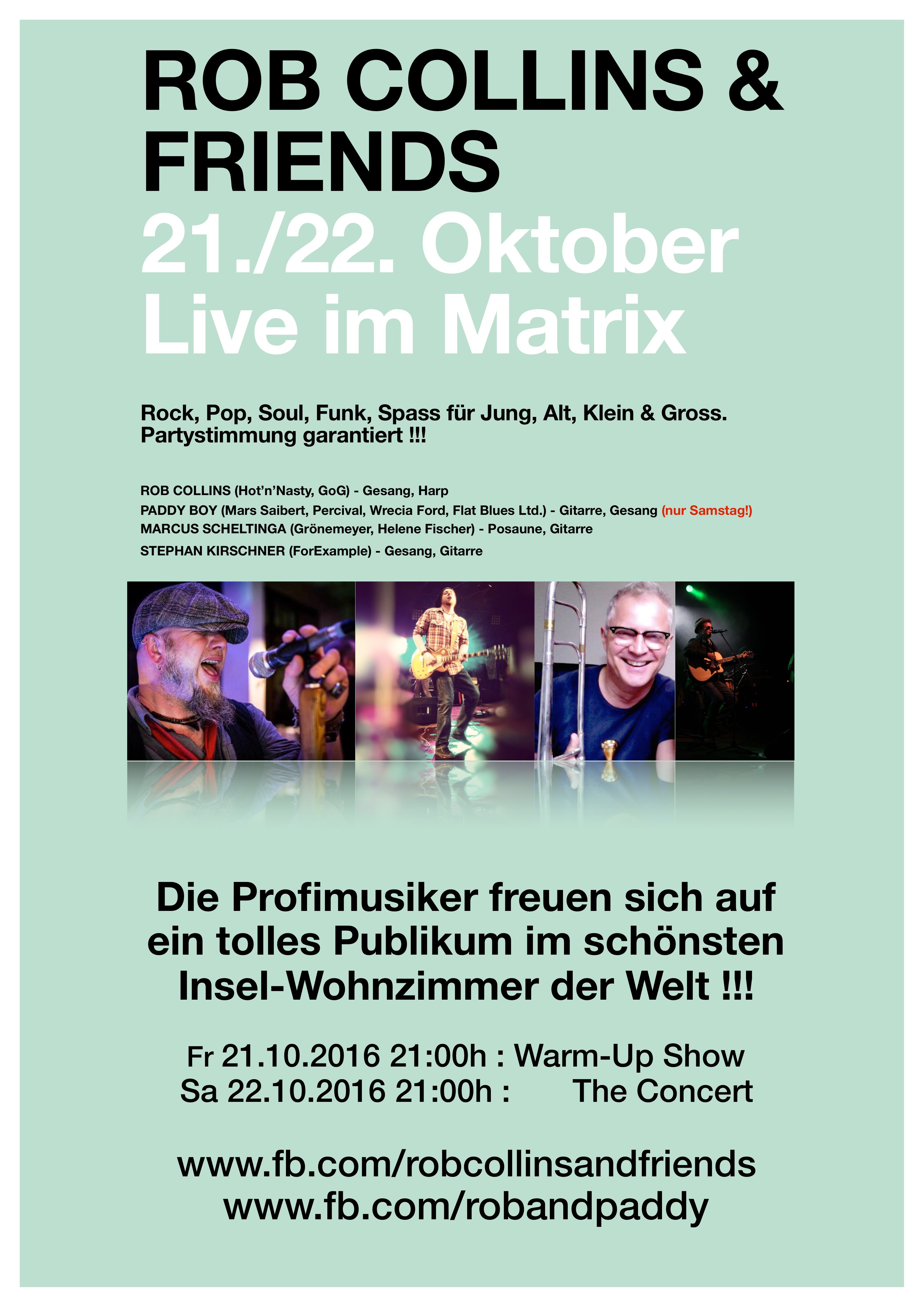 In wenigen Stunden setze ich mich in den Intercity Richtung Emden und dann auf die Fähre nach Borkum um heute Abend in der MATRIX STRANDLOUNGE mit meinen ROB COLLINS & FRIENDS Kollegen die Insel zu rocken 🙂