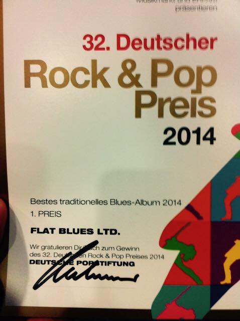 Wir haben mit FLAT BLUES LTD. den 1. Platz belegt in der Kategorie „Bestes traditionelles Bluesalbum 2014“ beim Deutschen Rock & Pop Preis.