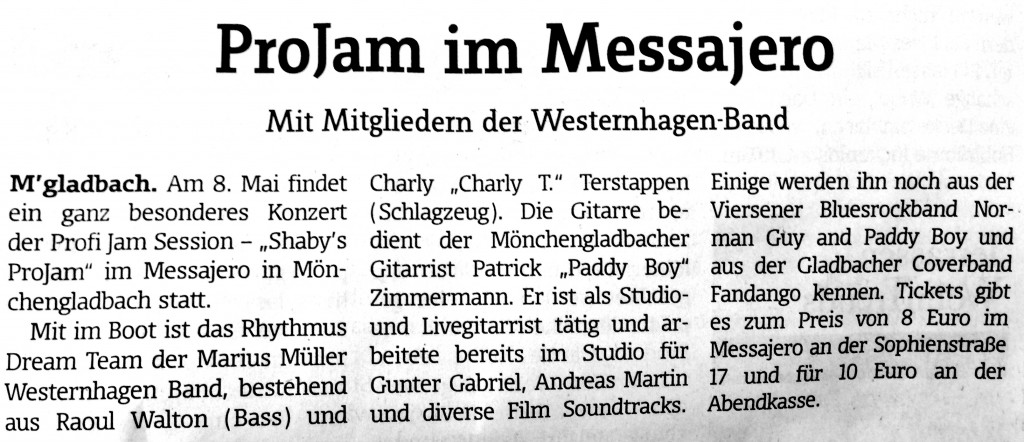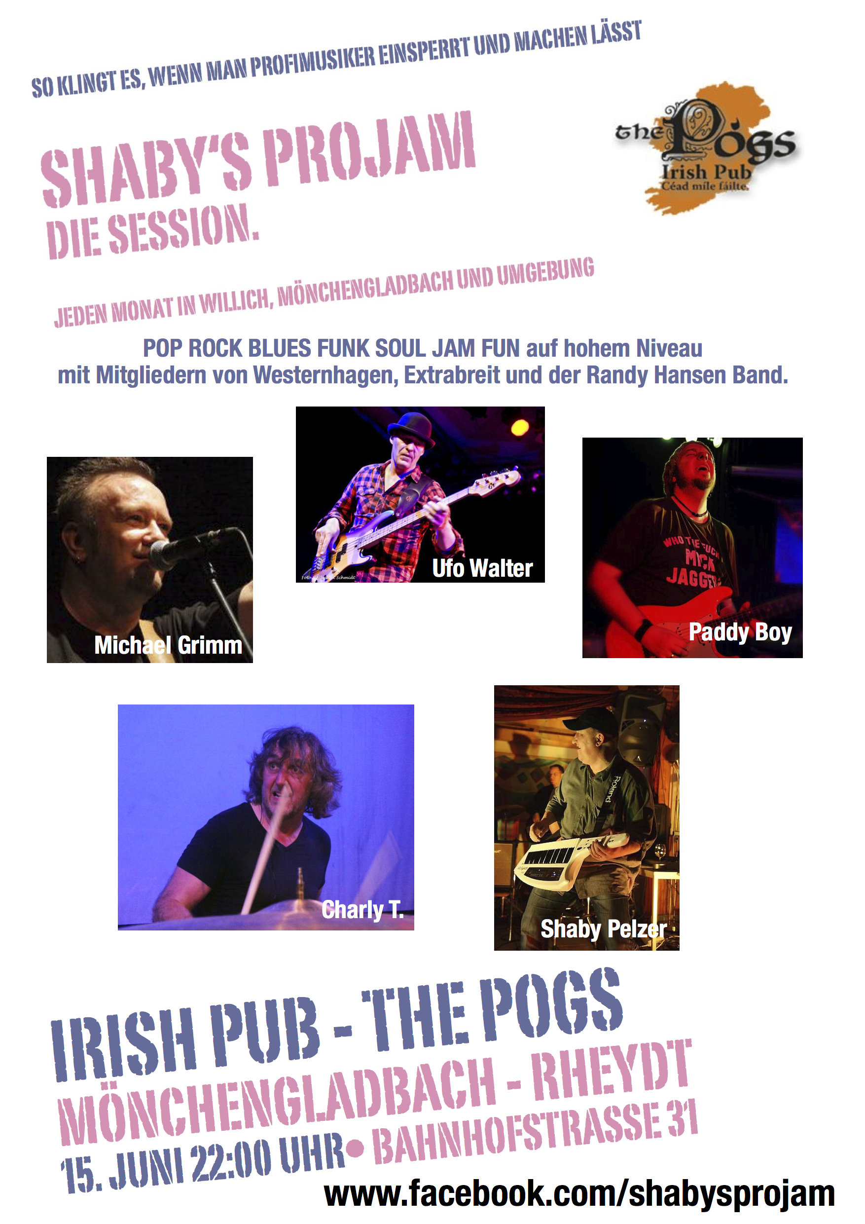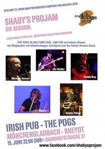 Ich spiele im Juni wieder auf „Shaby’s ProJam“, diesmal im Irish Pub – The Pogs in Mönchengladbach – Rheydt.