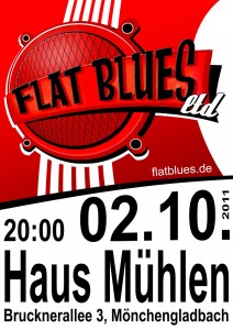 Ausserdem werde ich am Sonntag, den 2. Oktober mit FLAT BLUES LTD. ein Konzert im Haus Mühlen auf der Bruckneralle 3 in Mönchengladbach-Rheydt geben. Beginn 20:00 Uhr.